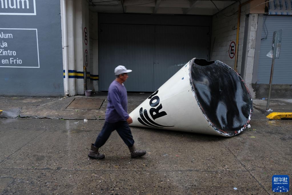 8月21日,一名男子走在墨西哥韦拉克鲁斯州波萨里卡飓风过后的街道上。