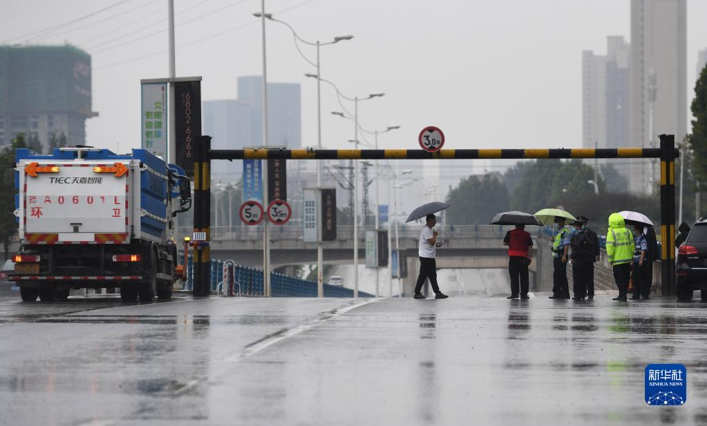 8月22日,工作人员在郑州市高新区化工路一处铁路涵洞口执勤。