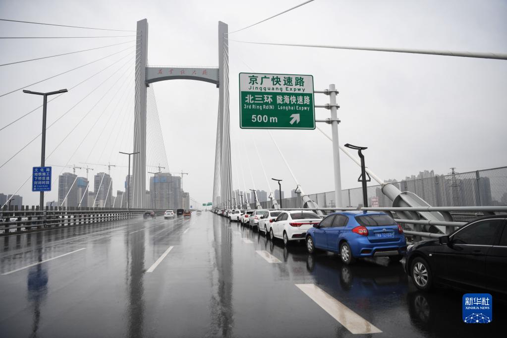 8月22日,市民将车辆临时停放在郑州市农业路高架桥上。