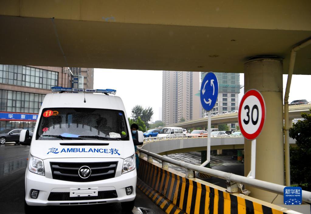 8月22日,一辆急救车停在郑州市河医立交桥上待命。