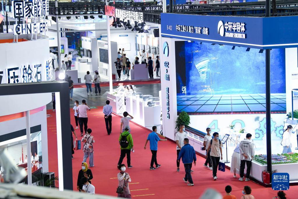8月22日,观众在中国-阿拉伯国家博览会清洁能源与新型材料展区参观。