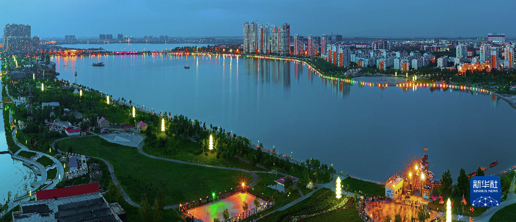 大庆市黎明湖夜景(资料照片)。