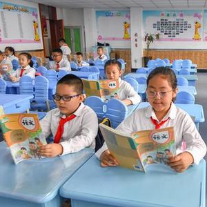 8月23日,在长春五十二中赫行实验学校小学部,学生们在晨读。