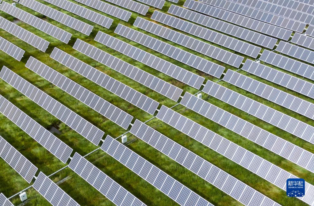 这是位于四川省阿坝州红原县邛溪镇麻萨村的花海光伏电站(8月14日摄,无人机照片)。新华社记者 江宏景 摄