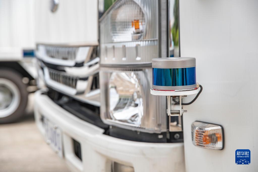 这是8月24日在重庆飞力达供应链管理有限公司拍摄的自动驾驶货车前的激光雷达。