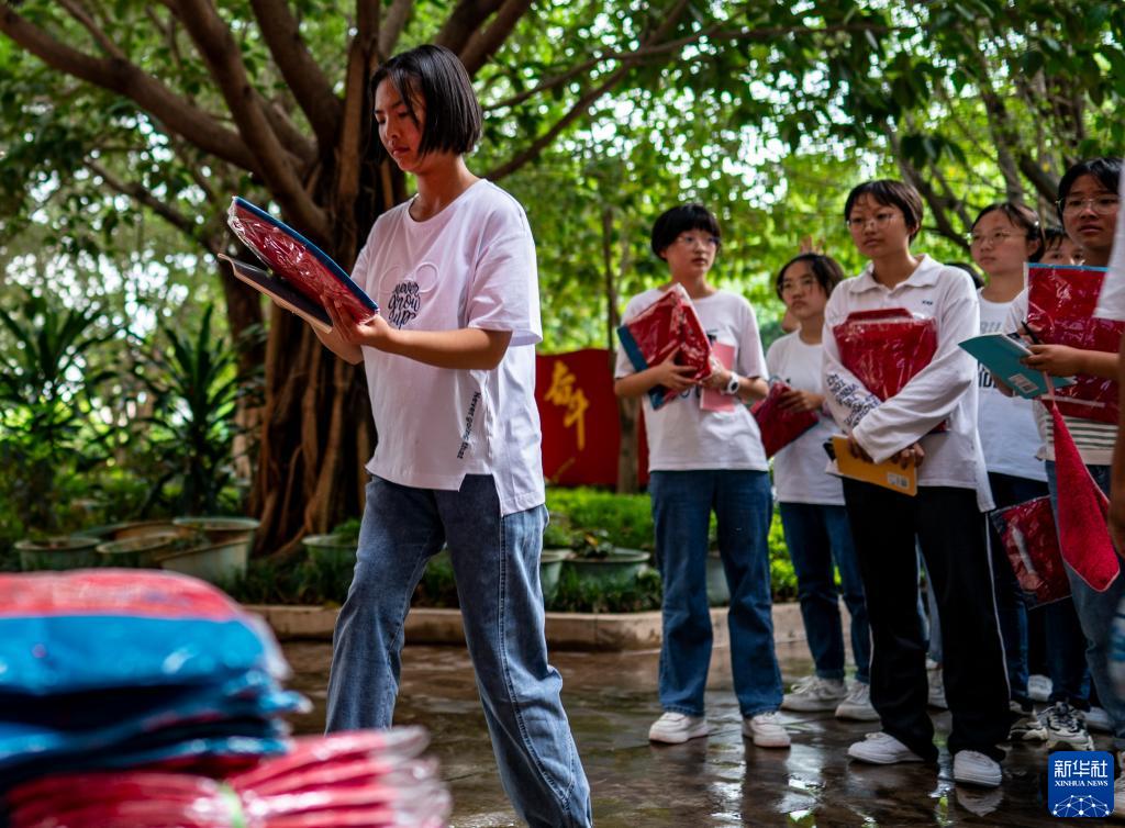 杨丽梅在学校领取新校服(8月23日摄)。