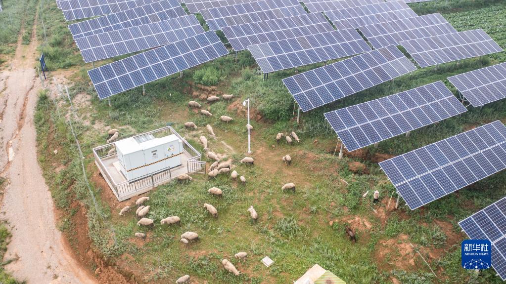 当地村民在仙水窝光伏电站放羊(8月24日摄,无人机照片)。