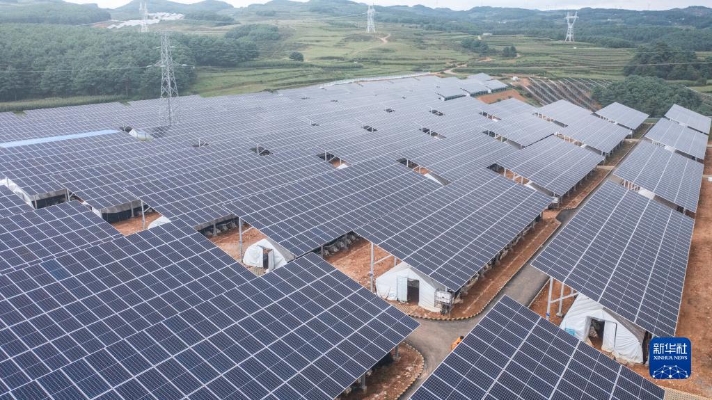 在贵州省毕节市威宁彝族回族苗族自治县,光伏板下5000多亩土地种植的农产品进入丰收季,食用菌、红菜苔、白萝卜……一片片光伏板下生机盎然。