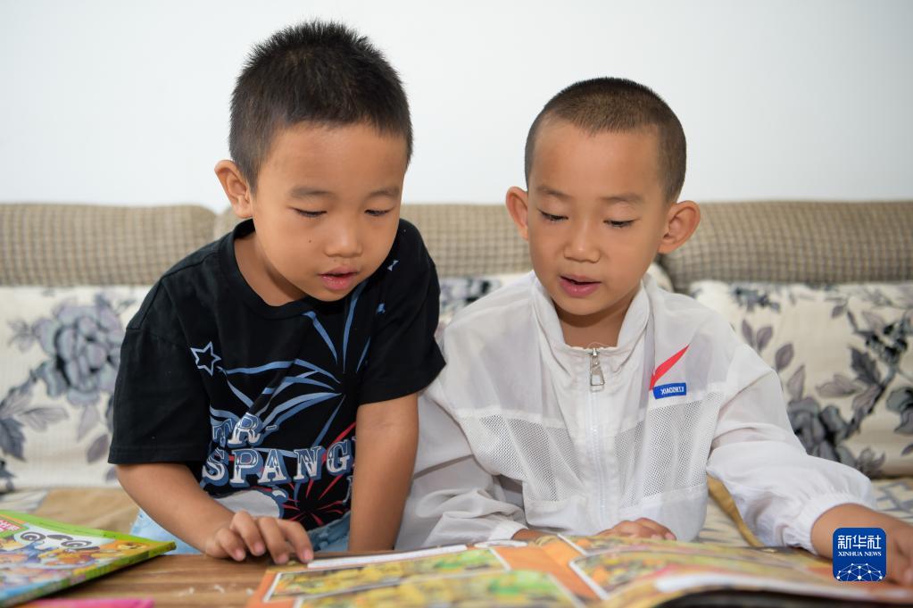 8月24日,小朋友们翻阅从爱心书屋借阅的图书。新华社记者 李志鹏 摄