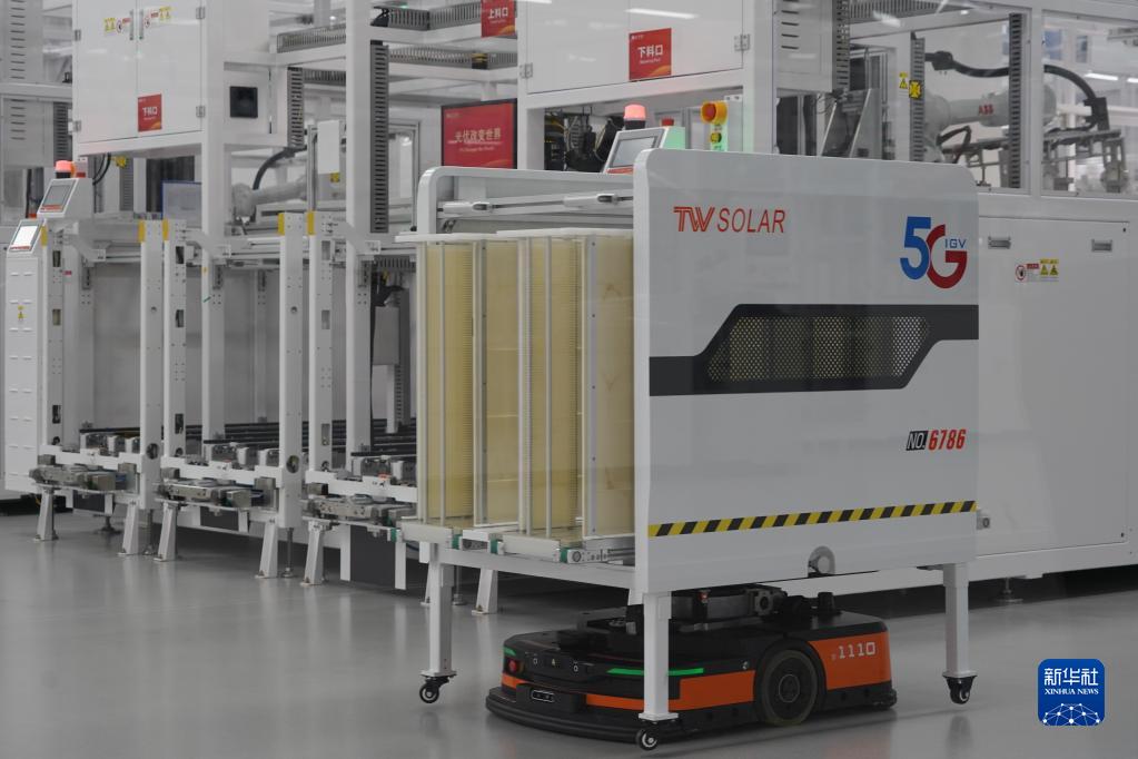 这是8月24日在通威太阳能(金堂)有限公司AE车间内拍摄的IGV智能机器人。新华社记者 胥冰洁 摄