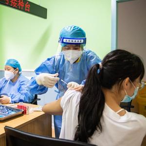 8月25日,在张家界市永定区永定街道社区卫生服务中心,居民排队接种疫苗。