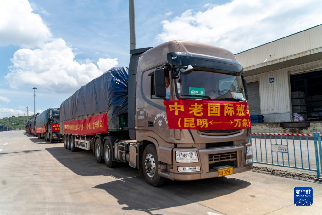 8月25日,在昆明市经开区中铁集装箱昆明中心站,中老国际物流通道货运班车等待发车。新华社记者 陈欣波 摄
