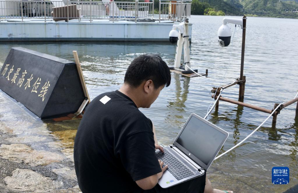 8月25日,北京市水务局的技术人员在安装密云水库最高水位视频监控系统。