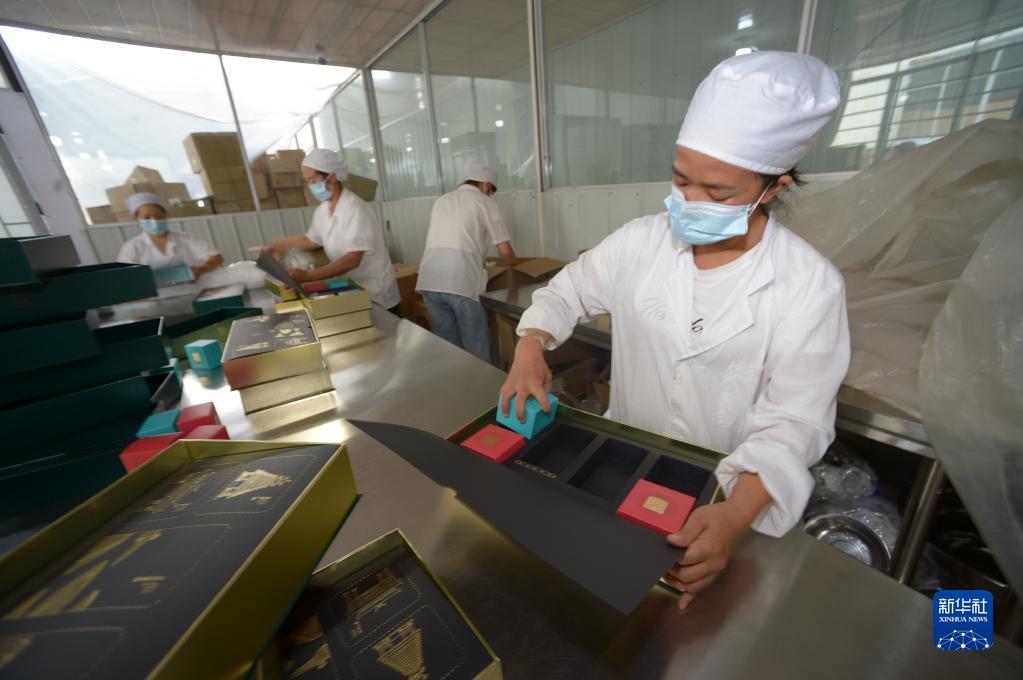 8月26日,工人在贵州省黔东南苗族侗族自治州丹寨金钟经济开发区一家茶叶生产企业的包装生产线忙碌。