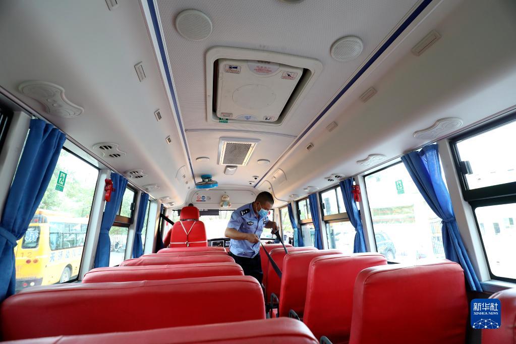 新学期临近,湖南省资兴市开展校车安全专项检查,对辖区校车的安全性能、防护设施、防疫措施、消防设备配备情况等进行检查,消除安全隐患,保障学生乘车安全,迎接新学期的到来。