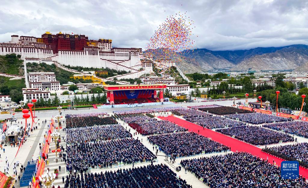 这是8月19日拍摄的庆祝西藏和平解放70周年大会现场。