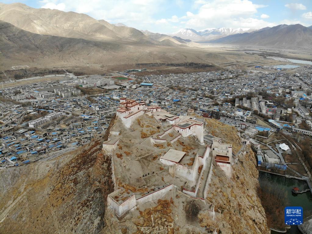 江孜宗山古堡(3月23日摄, 无人机照片)。