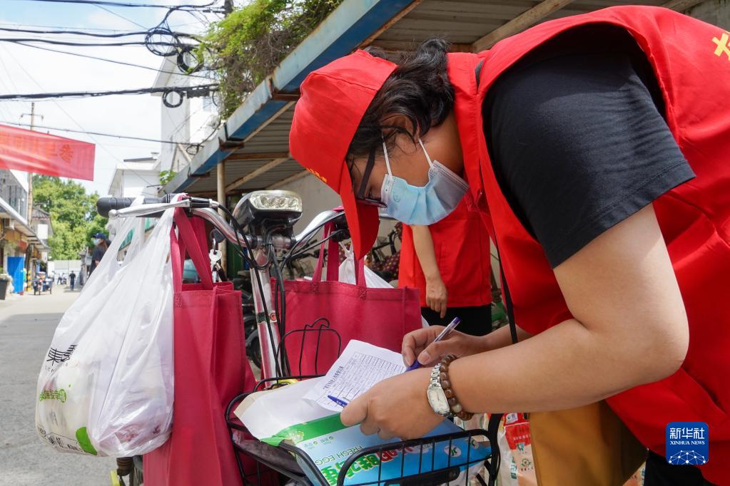 在扬州市广陵区东关街道个园社区,陈倩茹在查看社区内独居老人排查登记表(8月21日摄)。“志愿红”——陈倩茹是扬州市广陵区东关街道个园社区的网格员。疫情发生以来,陈倩茹和同事们坚守在社区疫情防控一线,从全员核酸检测、重点人群摸排,到小区公共场所消杀、人员体温测量,再到防疫知识宣传、生活物资配送,全力保障社区居民生活。