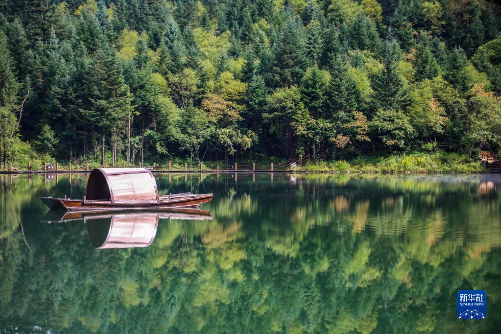 这是8月26日拍摄的官鹅沟国家森林公园内的泽荡湖。