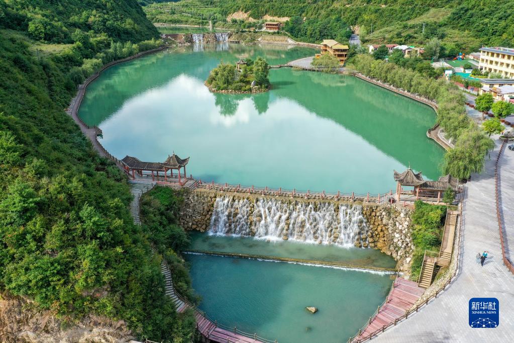 这是8月26日拍摄的官鹅沟国家森林公园的鹅嫚湖(无人机照片)。