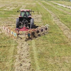 初秋时节,在河北省西北部的张家口市塞北管理区天然牧场,工人们操作机械收获秋草,为牲畜越冬做准备。