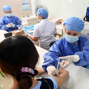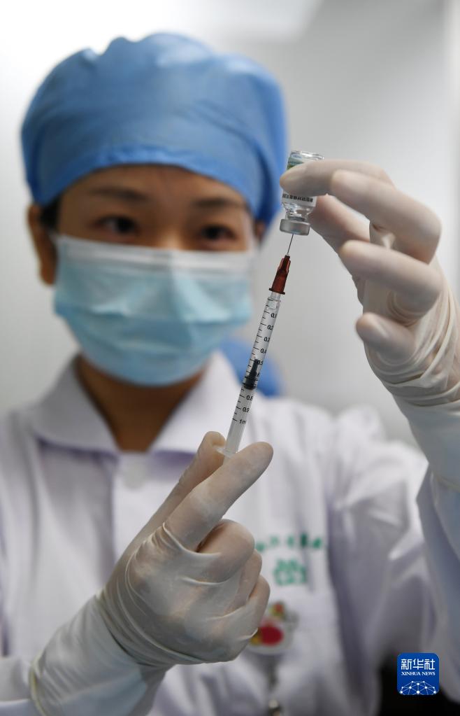 8月27日,在广西南宁市青秀区方园社区卫生服务中心,医务人员在做新冠疫苗接种准备。