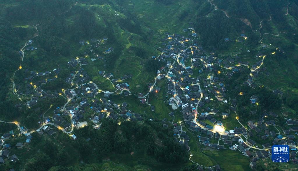 这是广西融水苗族自治县杆洞乡锦洞村夜景(无人机照片,8月26日摄)。