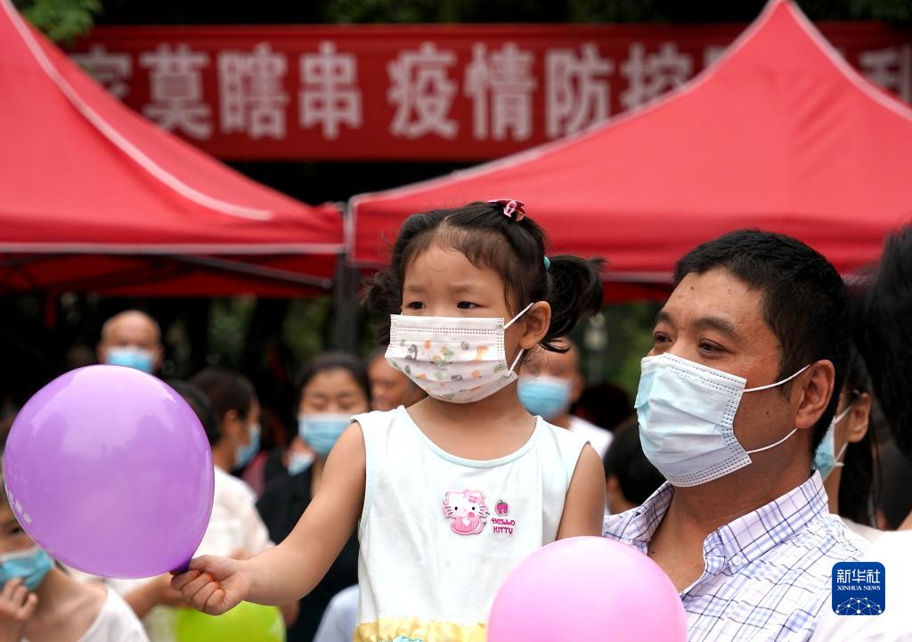 8月28日,在郑州市二七区京广路街道的一个小区里,市民在等待解封。