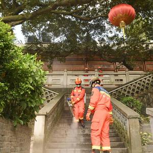 8月28日,福州市消防救援支队鼓楼大队消防人员在福州乌山小学开展消杀工作。