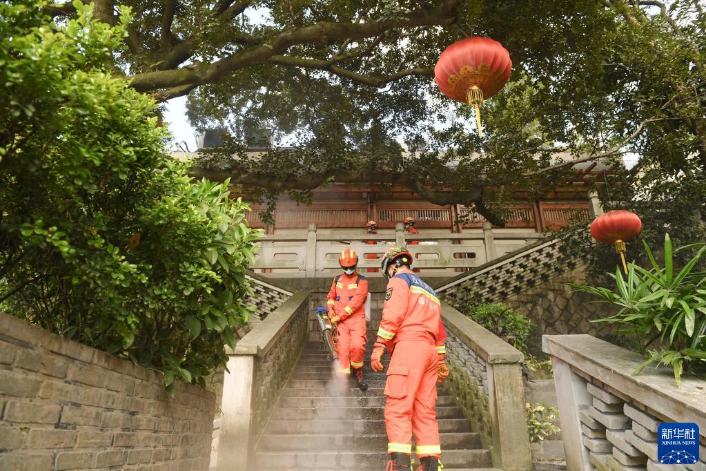 8月28日,福州市消防救援支队鼓楼大队消防人员在福州乌山小学开展消杀工作。
