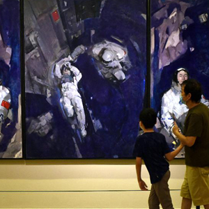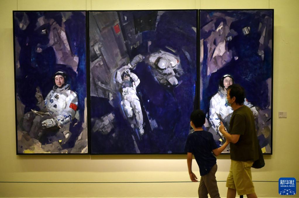 8月29日,参观者在中国美术馆参观展出作品《太空的足迹》。