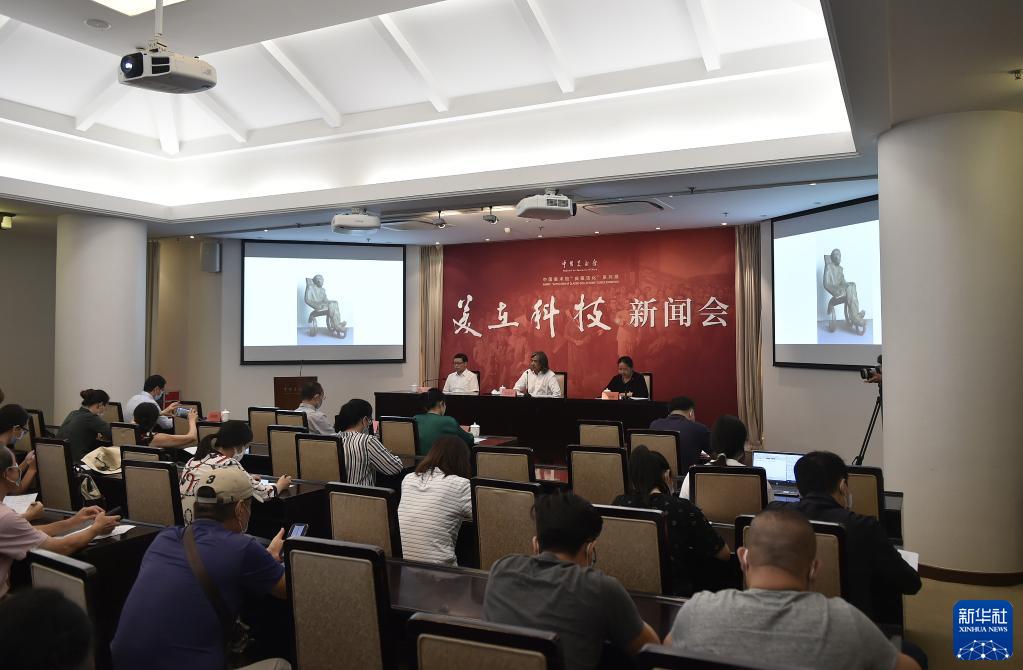 8月29日,中国美术馆馆长吴为山(中)在新闻会上介绍展览相关情况。