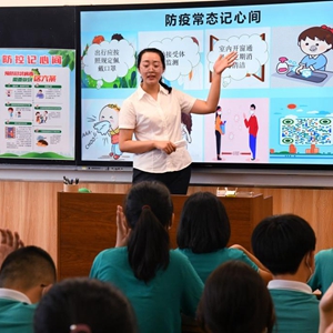 当日,山东省青岛市部分学校迎来返校日。根据青岛市疾控中心要求,学生均在开学前进行了连续14天每日体温监测,并主动及时向学校报备健康状况和活动轨迹,做好开学入校健康检查。