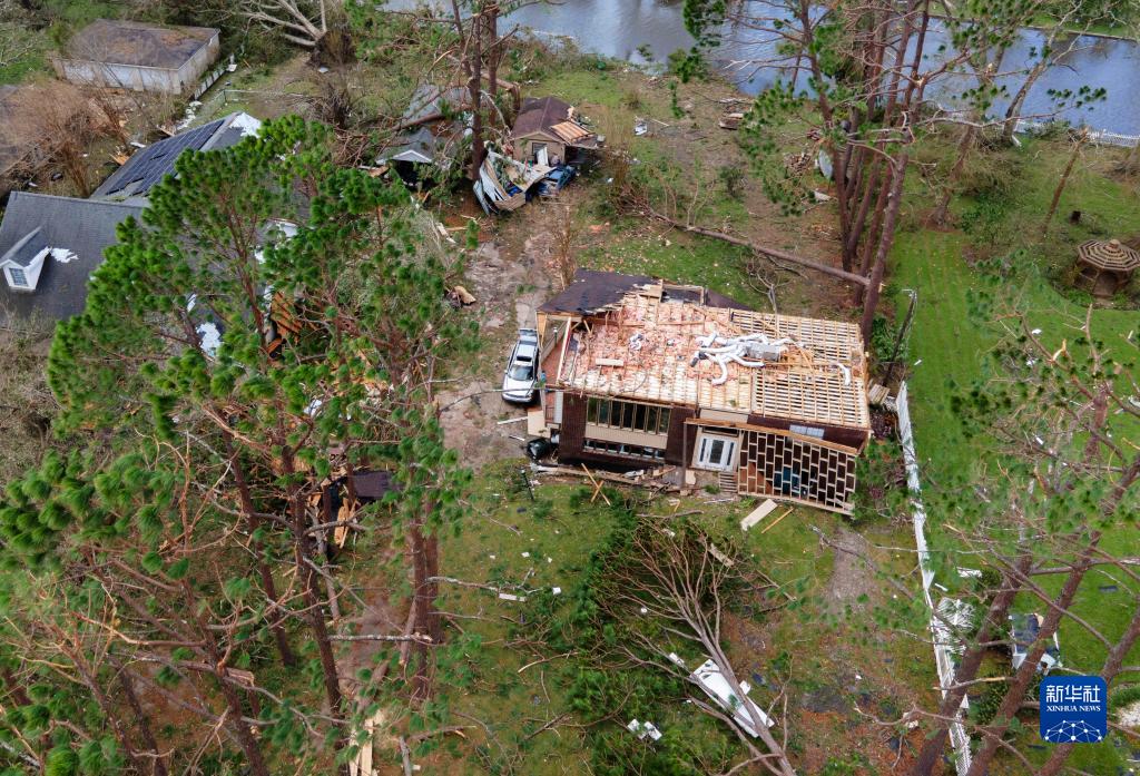 8月30日,在美国路易斯安那州霍马,房屋被飓风毁坏(无人机照片)。