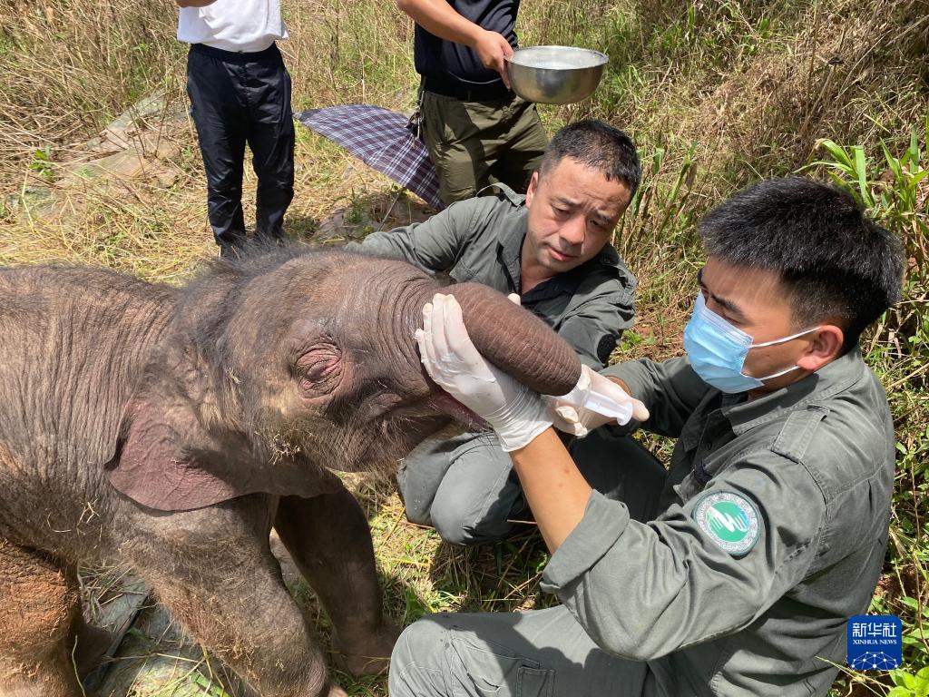 云南:幼象出生仅6天遭遗弃 工作人员全力救治