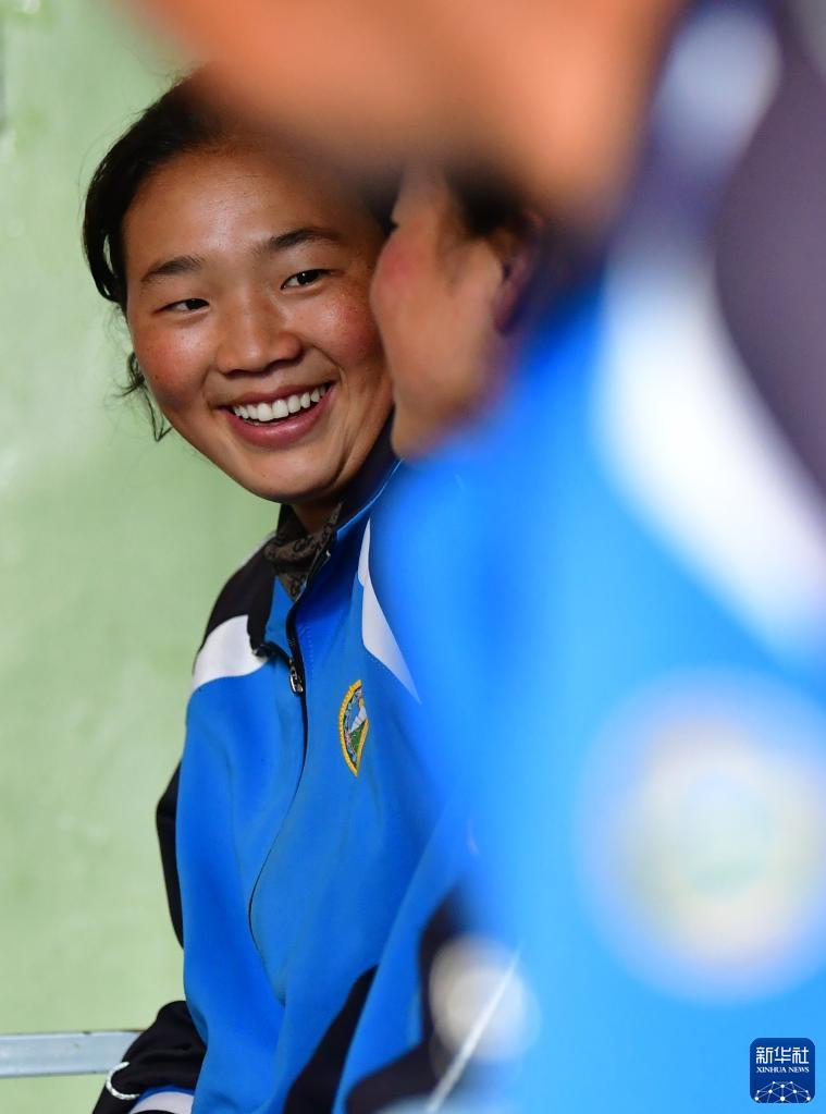 碌曲县藏族中学的高三学生在寝室里交流(8月30日摄)。