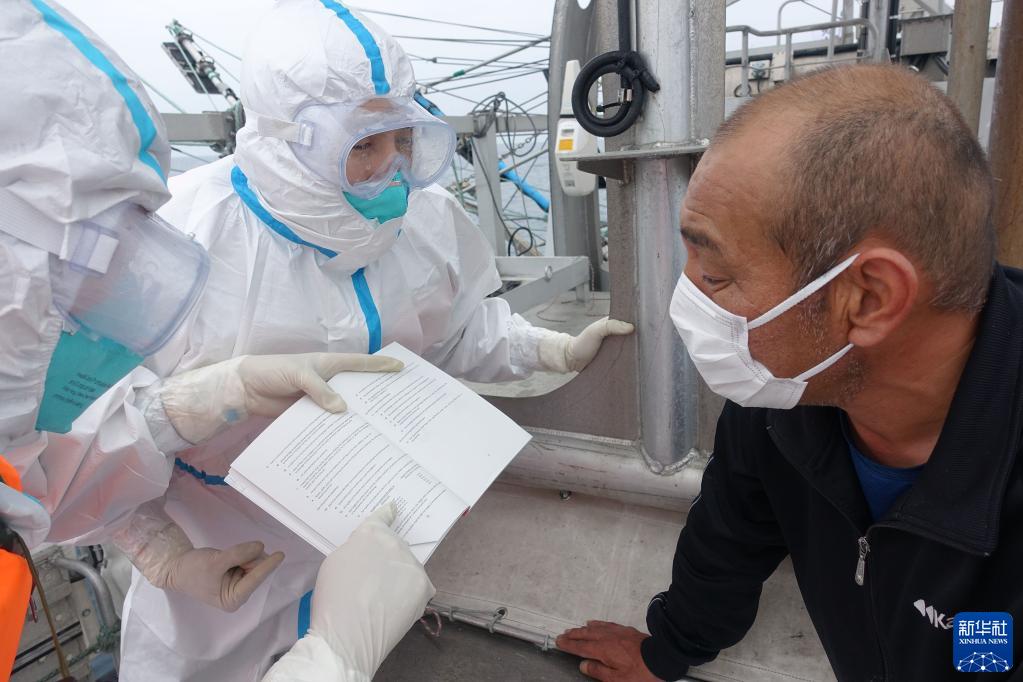 中国海警执法员开展北太平洋公海养护管理措施宣传(8月17日摄)。新华社发(陈晓晓摄)