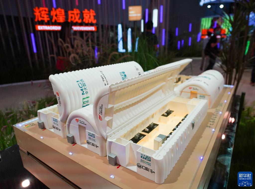 这是在国家会议中心展馆内展出的华大基因火眼实验室(气膜版)模型(8月31日摄)。