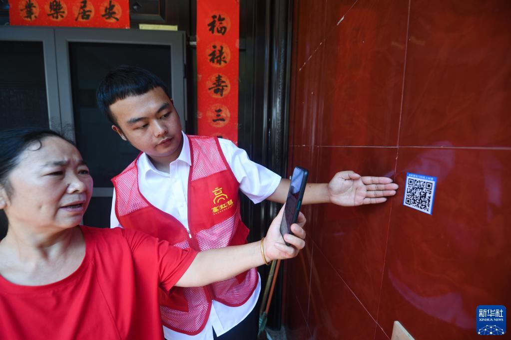 9月1日,党员志愿者在杭州市临安区高虹镇石门村引导村民用手机扫码进入村务平台,了解村级在建工程和村级财务。