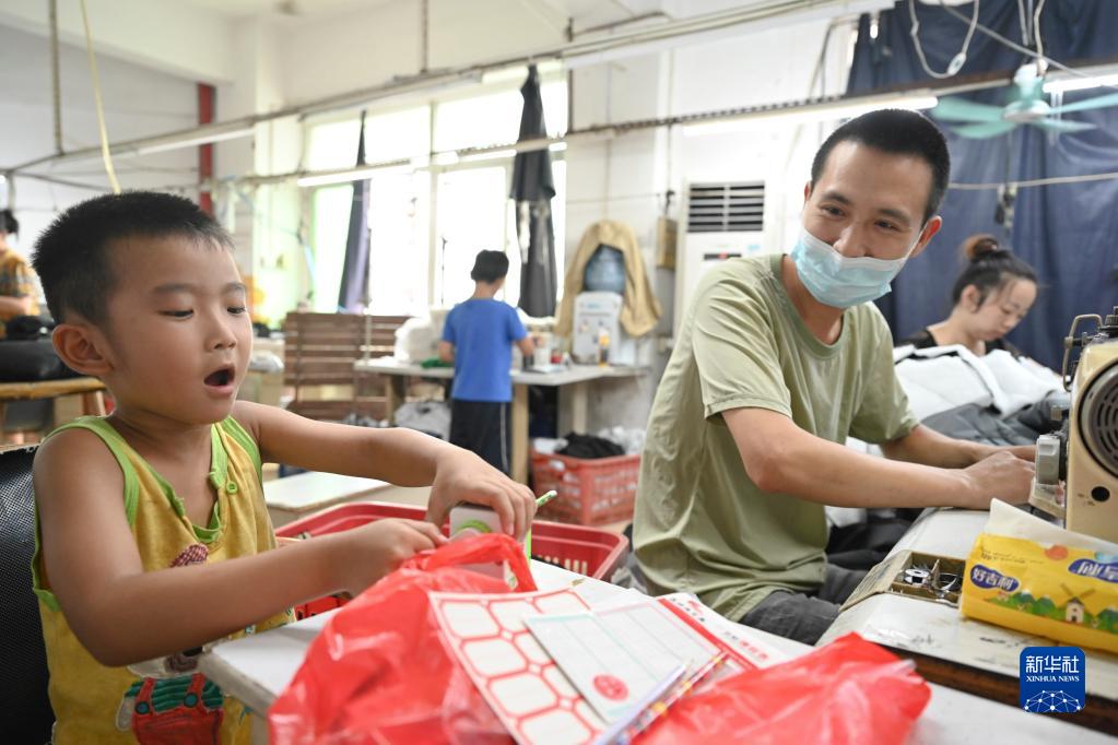 8月31日,在福建省石狮市金利莱斯服装厂,聪聪在开学前一天削铅笔。