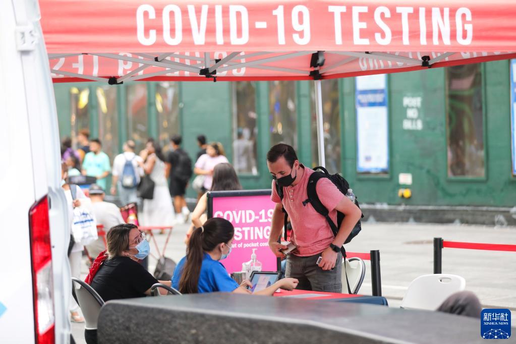 8月31日,一名男子在美国纽约时报广场的流动新冠检测点登记检测。