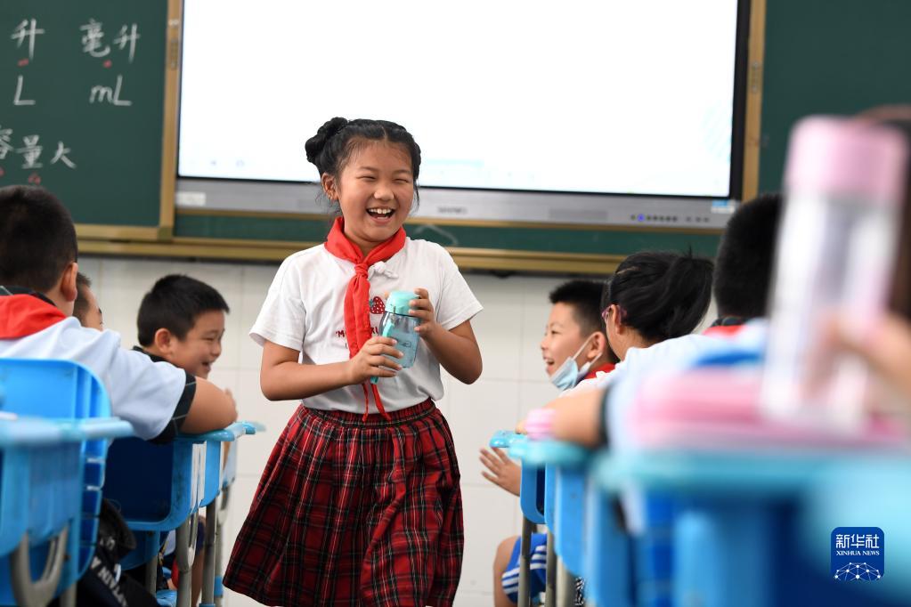 9月1日,在合肥市芙蓉小学,张清语和班里的同学在一起。新华社记者 刘军喜 摄