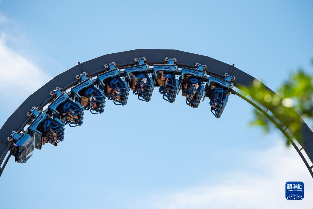 8月26日,游客在体验北京环球影城主题公园里的霸天虎过山车。