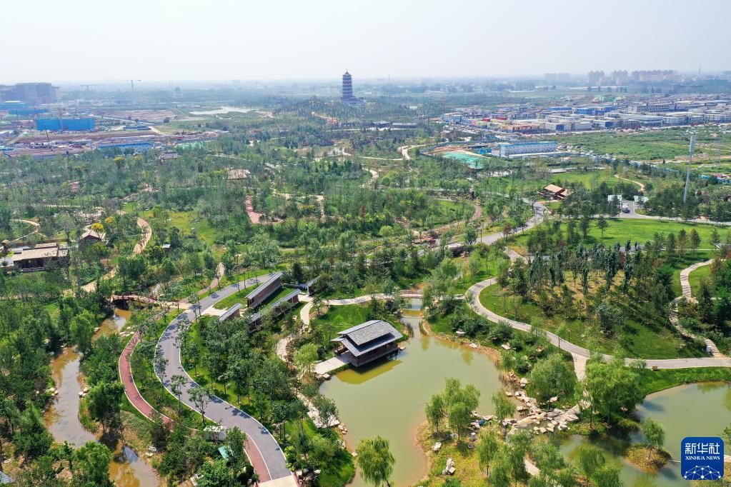 这是雄安新区悦容公园北苑内的景色(9月1日摄,无人机照片)。