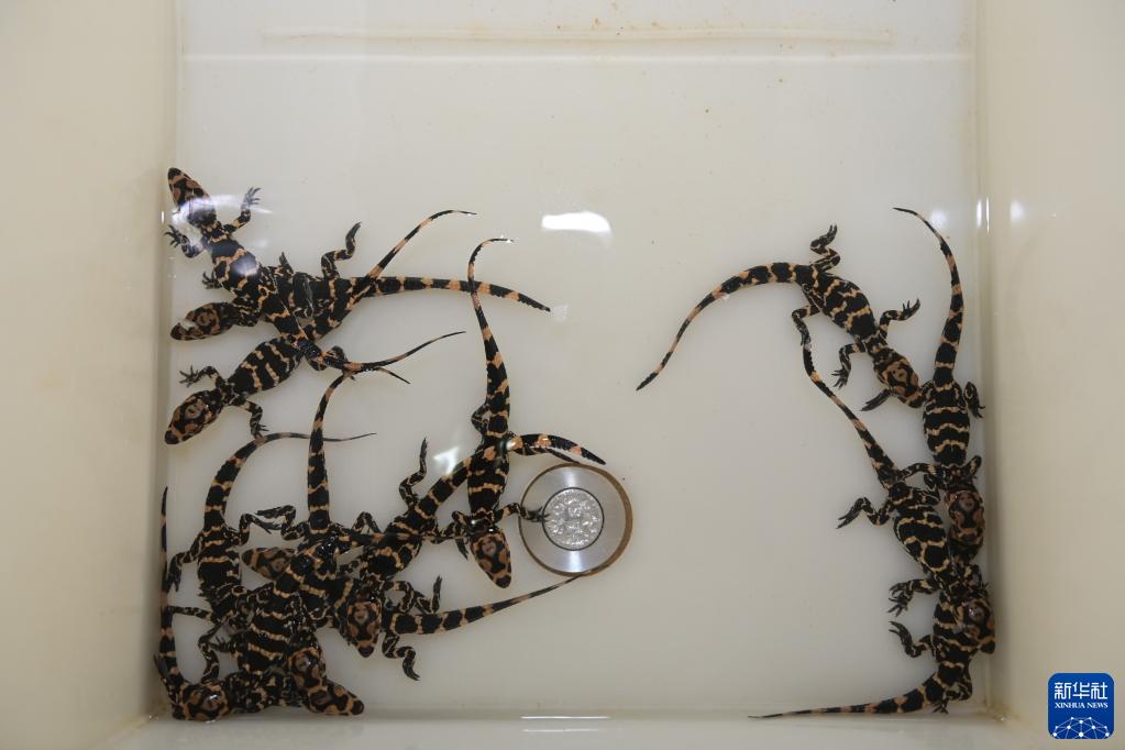 8月31日,未满月扬子鳄幼鳄在饲养箱内活动。