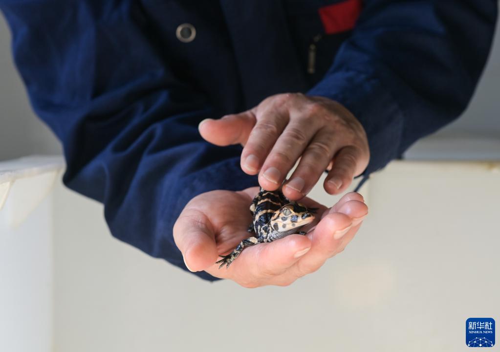 8月31日,工作人员观察未满月扬子鳄幼鳄状况。