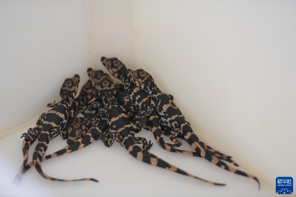 8月31日,未满月扬子鳄幼鳄在饲养箱内活动。