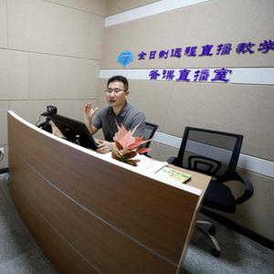 9月1日,数学老师在给成都七中东方闻道网校“网课班”高三学生上课,课程内容通过远程教育系统面向全国320多所学校直播。