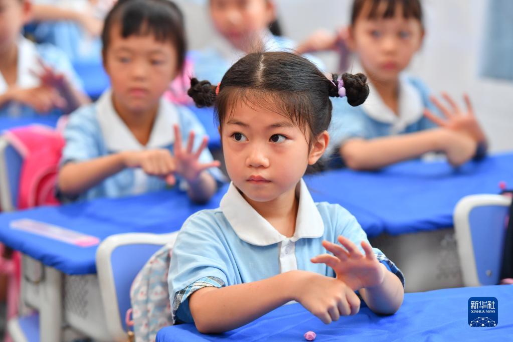9月2日,长沙市天心区仰天湖桂花坪小学二年级的学生在防疫课堂上学习洗手法。