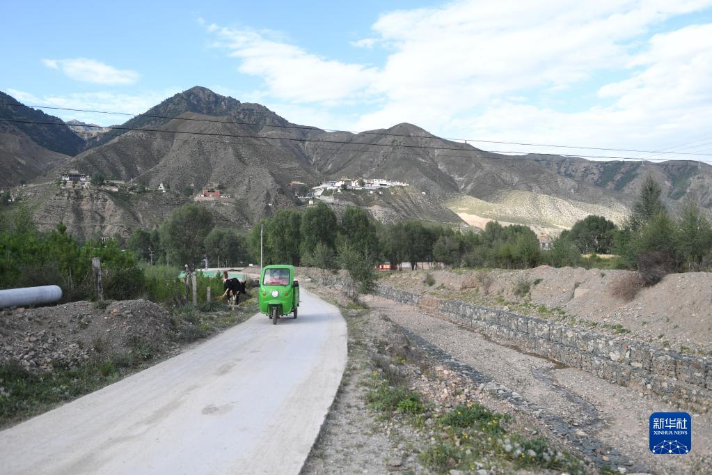 9月1日,保洁人员在扎毛村运送垃圾。